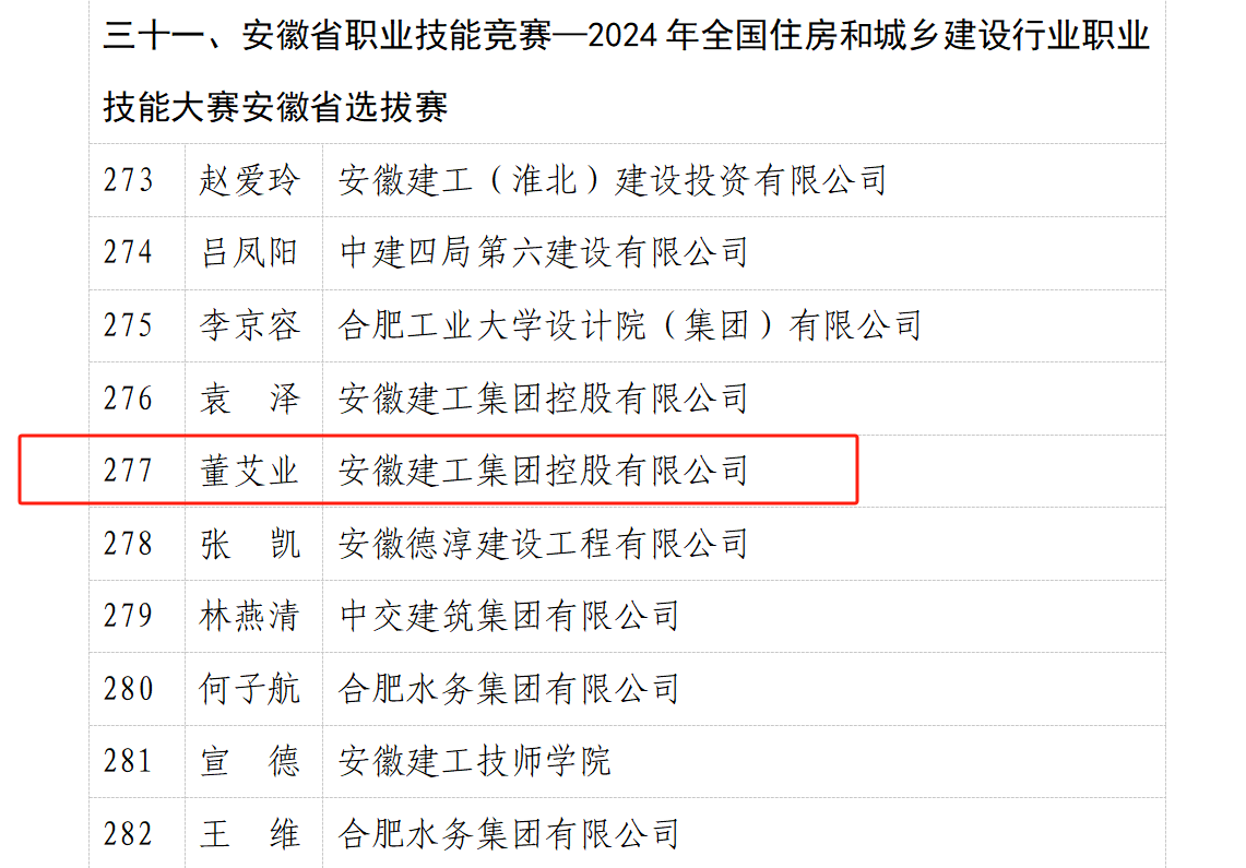 近日,公司鋼筋工董艾業代表安徽建工集團參加2024年全國住房和城鄉建設行業職業技能大賽安徽省選拔賽,并憑借扎實的專業功底與精湛技藝,榮獲 “安徽省技術能手” 稱號。該榮譽不僅是董艾業個人職業生涯的高光時刻,更是公司在產業工人技能培育領域長期耕耘的有力見證。